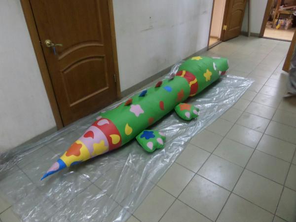 Мягкая напольная игрушка Крокодил общей длиной 3 метра. Размеры 300х70х40 см. Изготовлен из кожзаменителя и поролонового наполнителя.